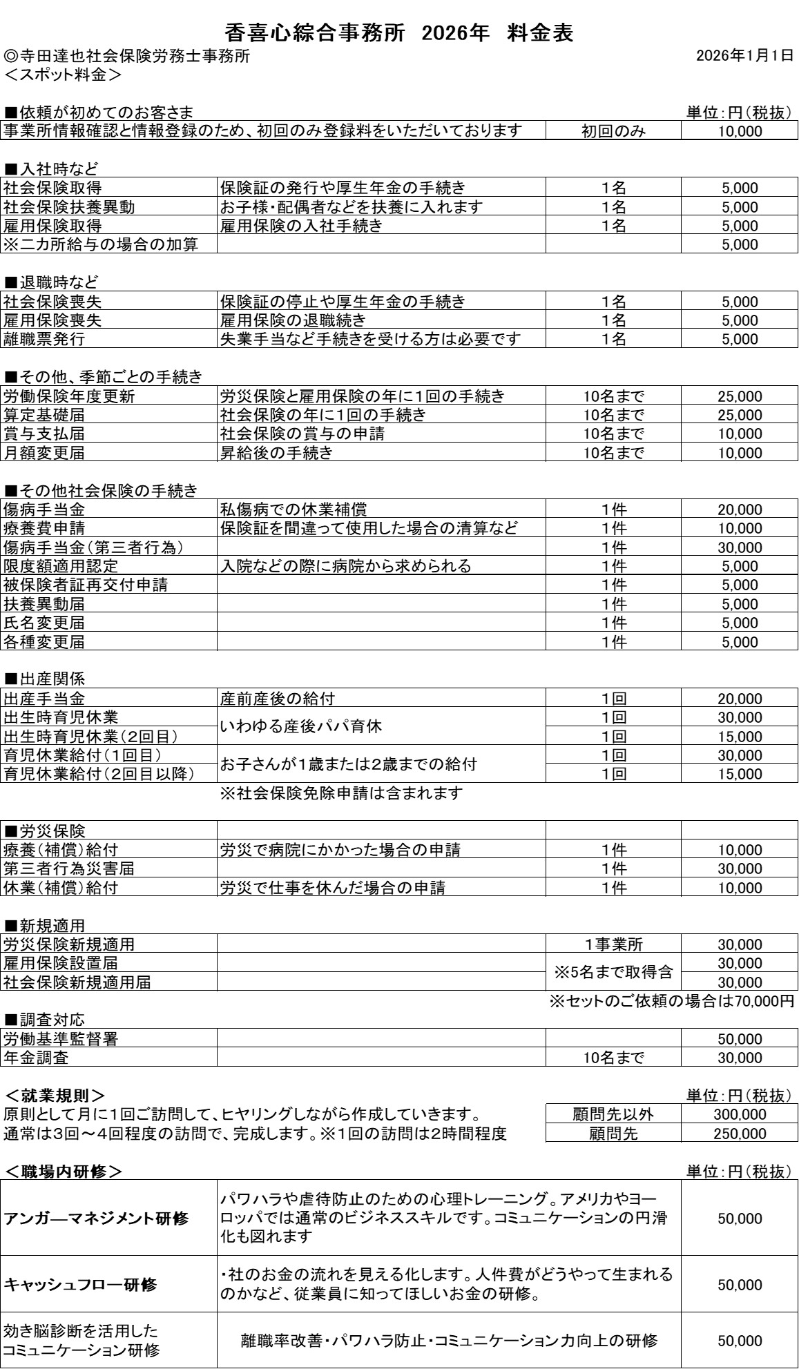 スポット業務には、労務相談等は含まれませんので、よろしくお願い致します。